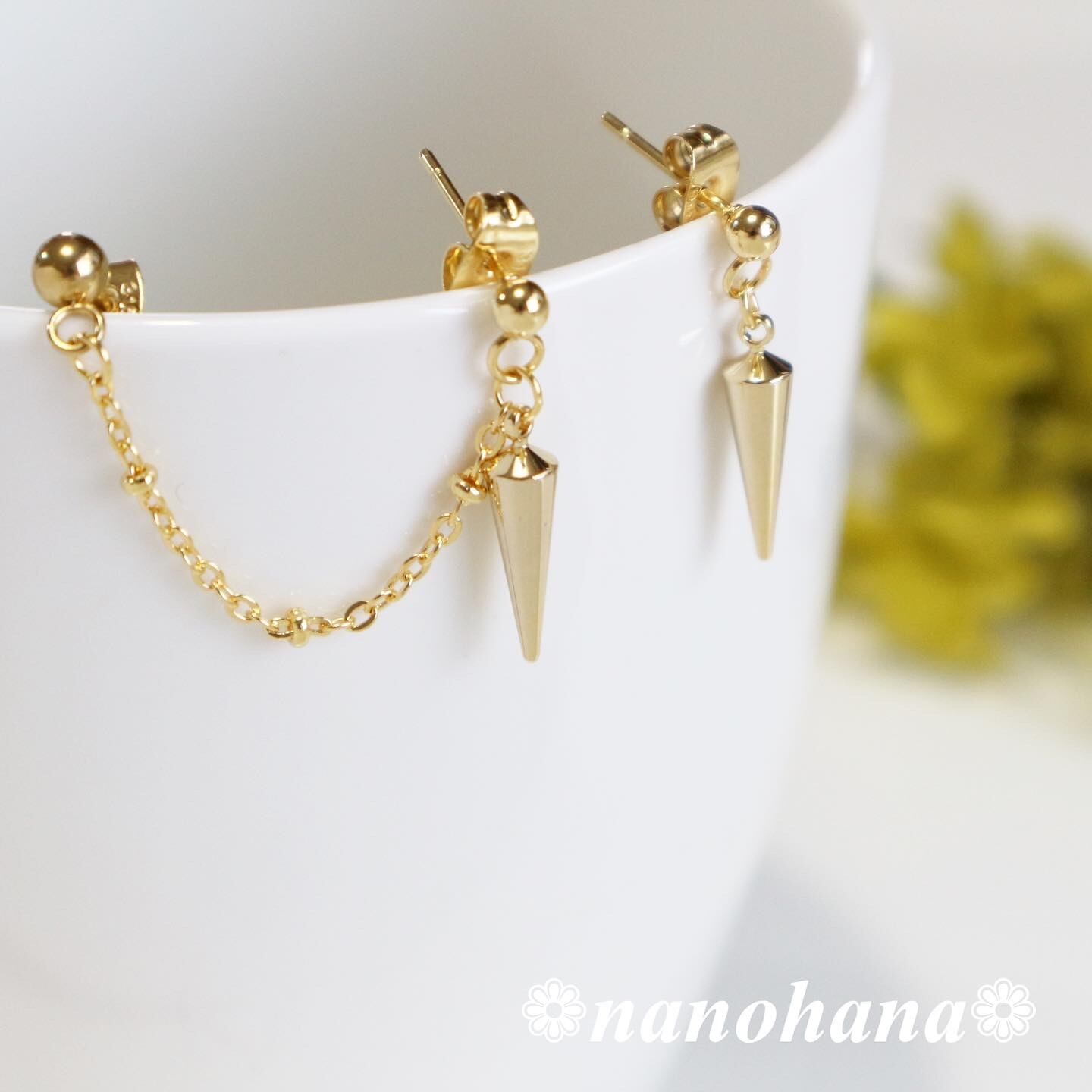 《円錐2連チェーンピアス・ゴールド 》030サージカルステンレス