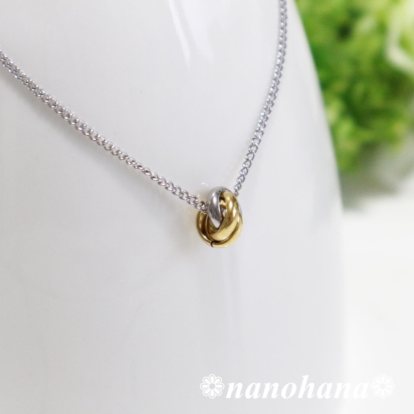 3連のリングデザインが特徴で、洗練されたスタイルを演出します。さらに、ダブルカラーの組み合わせがネックレス全体を引き立てています。そのため、シンプルなコーディネートに華やかさをプラスしたいときに最適なアクセサリーです。