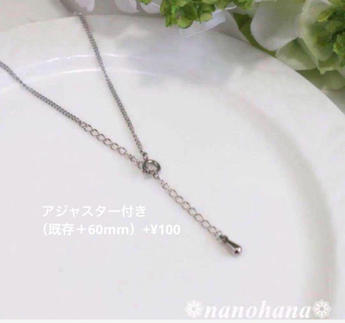 金属アレルギーの方でもお使いいただけるよう全てのパーツ、金具等サージカルステンレス素材を使ったネックレスです。