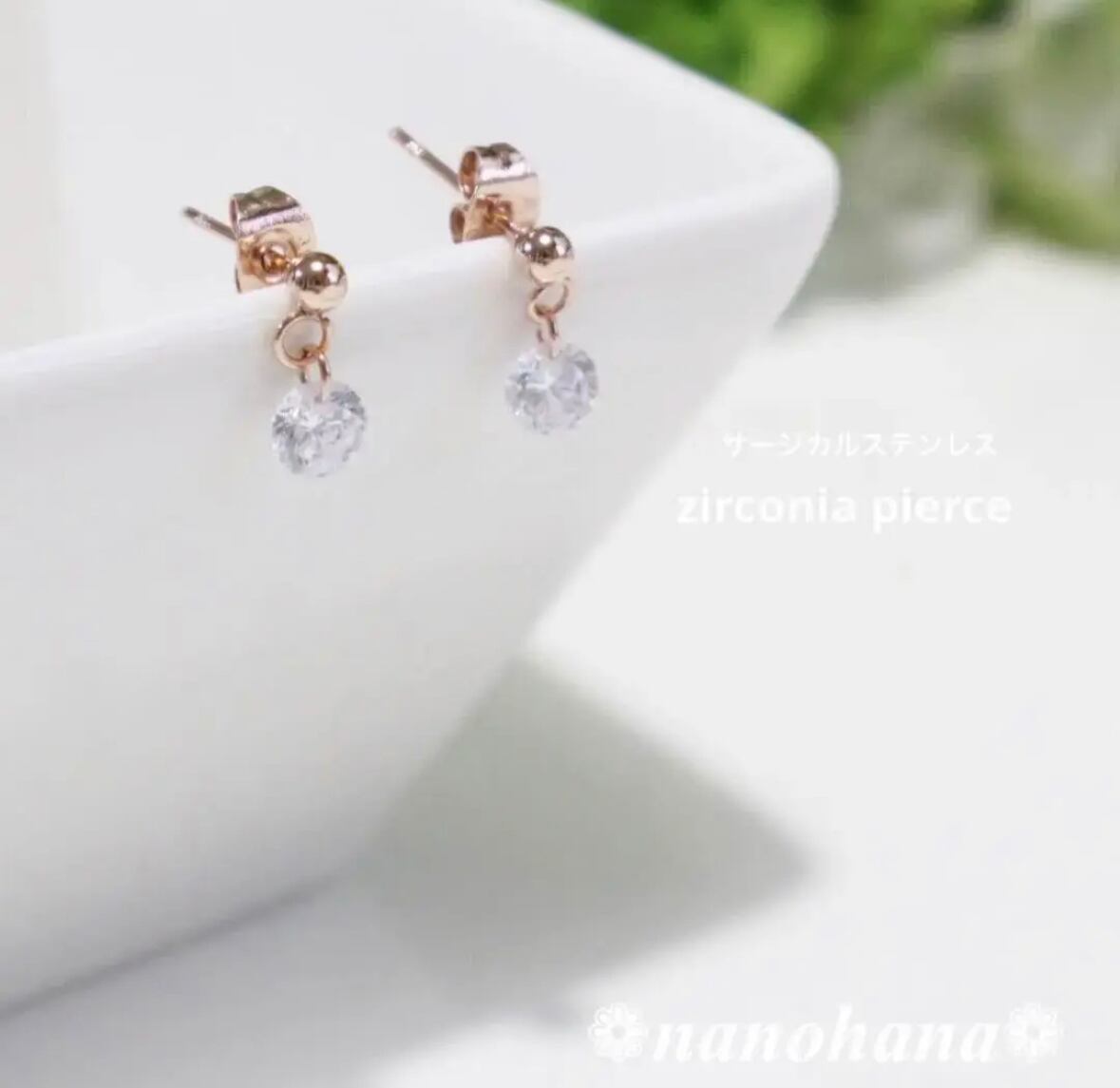 ジルコニア以外全てのパーツ、金具等サージカルステンレスを使ったピアスです。
