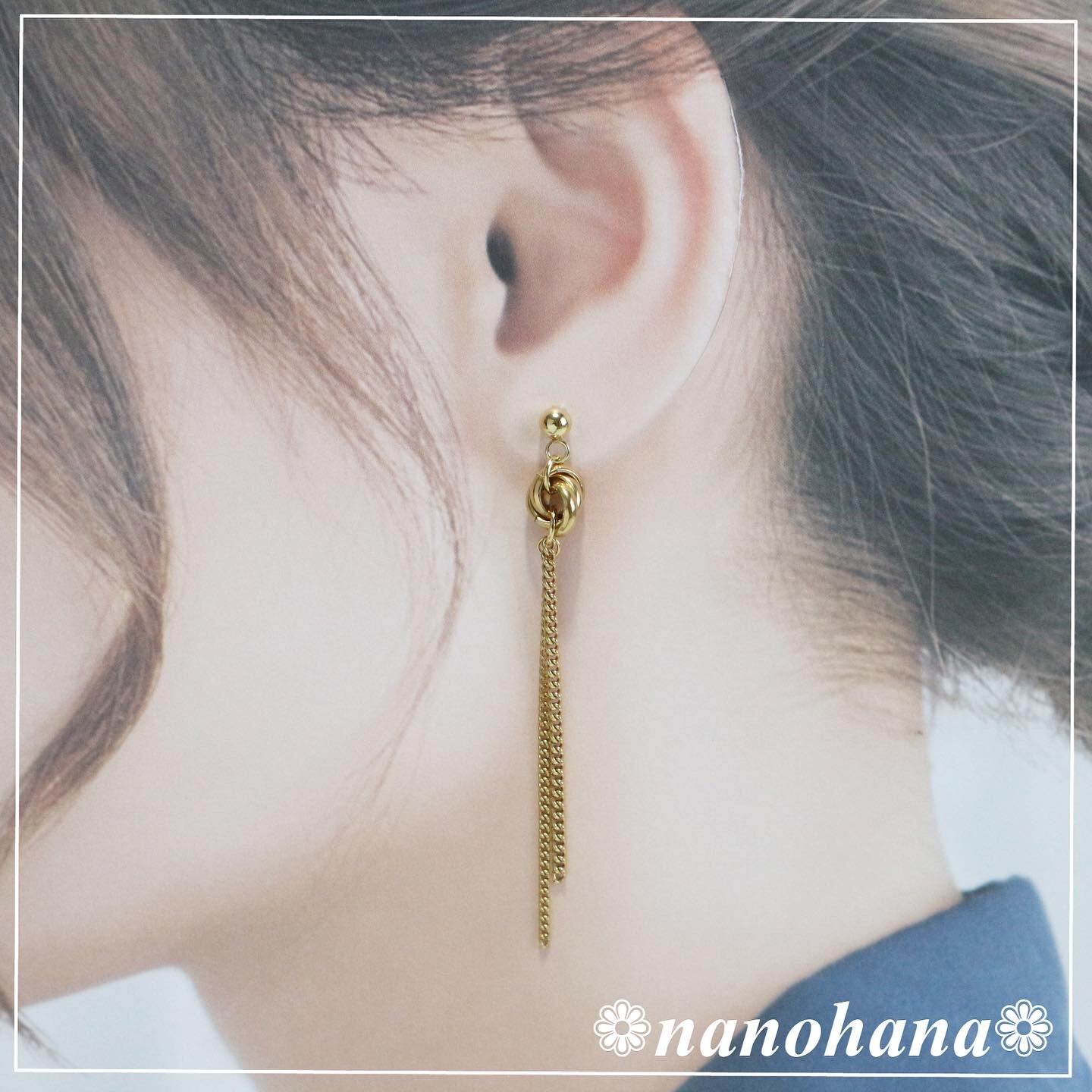 3連チェーンとリングを合わせたピアスです。