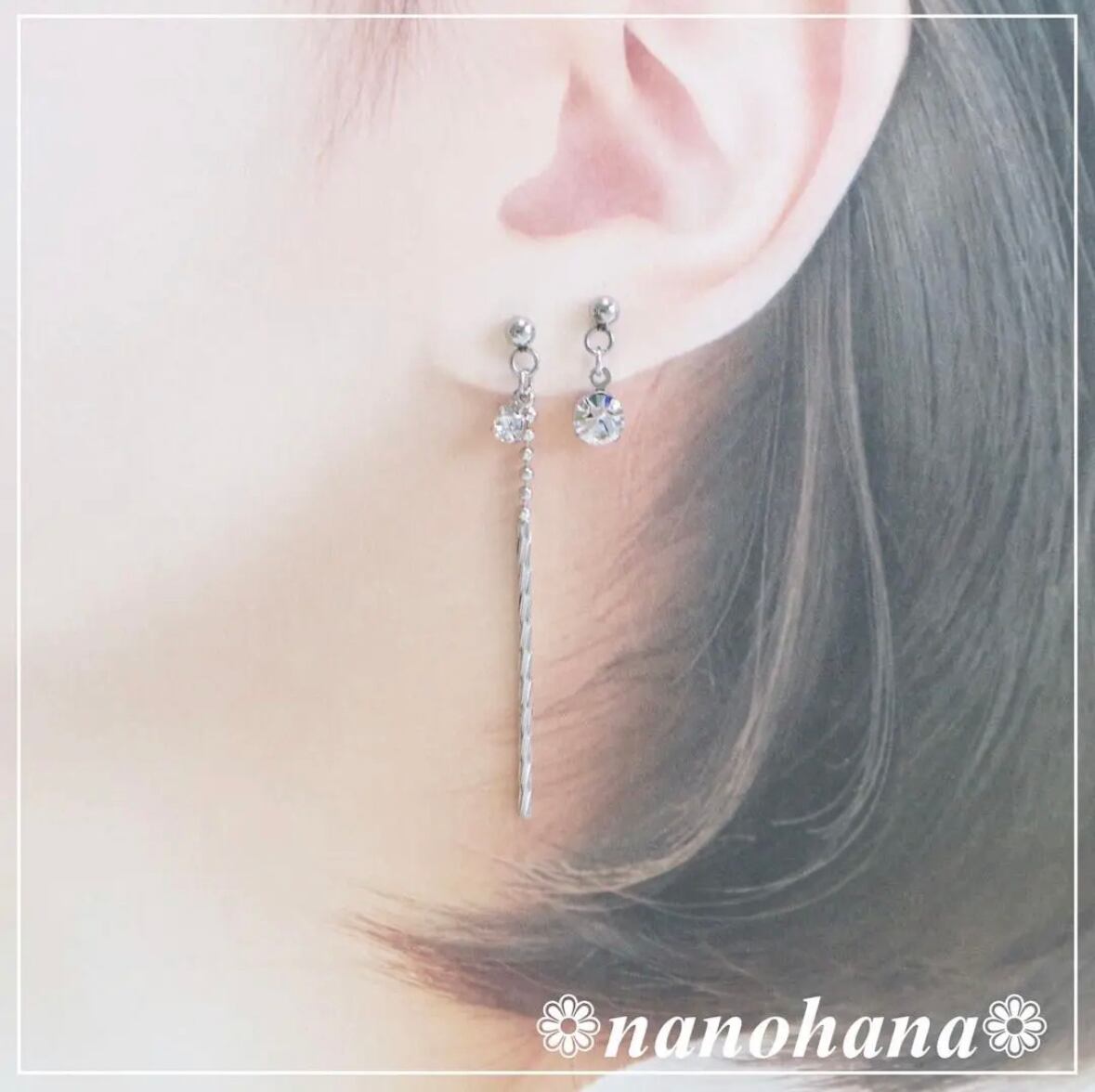 シルバーの輝きとラインストーンの輝きが華やかな印象を与えるアクセサリーです。
