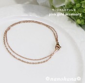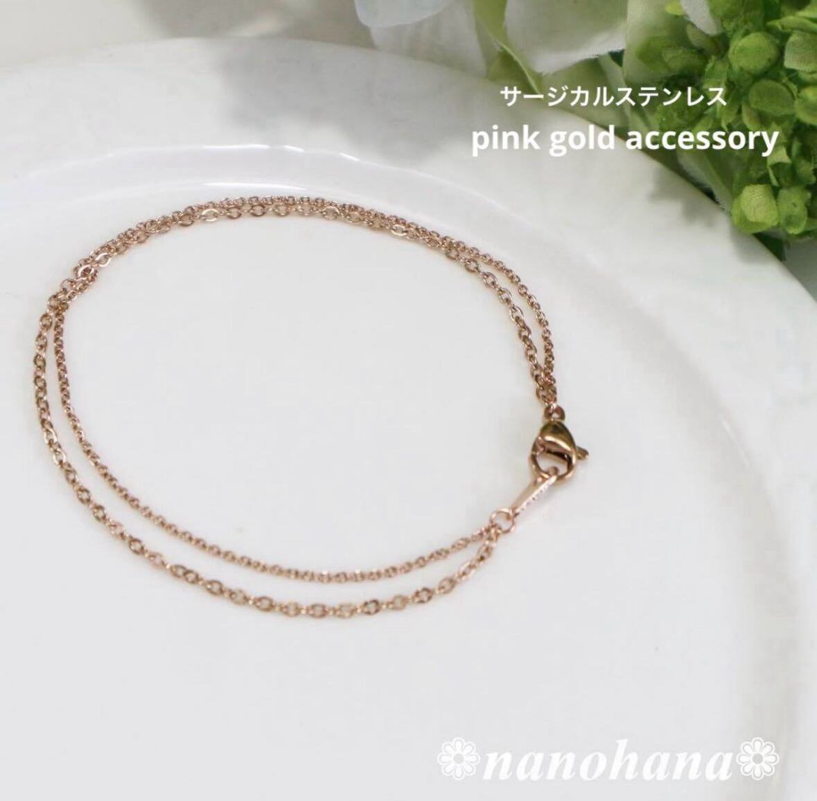 ピンクゴールド/ブレスレット/2連チェーン/華奢ブレスレット/金属アレルギー対応/ステンレスアクセ