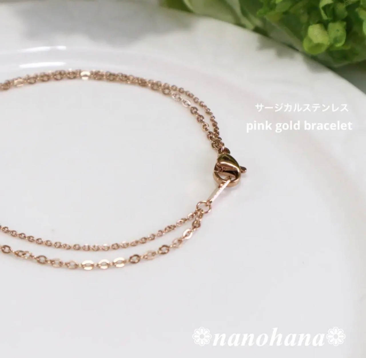 《ダブルチェーンブレスレット・ピンクゴールド》691オールサージカルステンレス