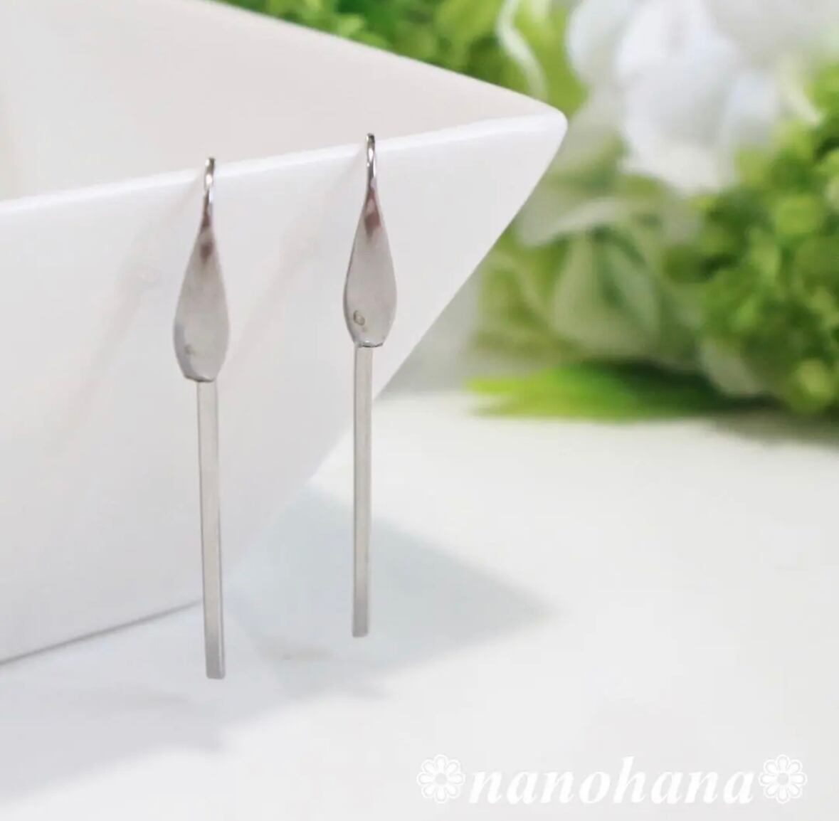 スタイリッシュでクールなデザインの《スティック付デザインフックピアス・シルバー》。医療用にも使われるサージカルステンレスを使用しているので、肌に刺激を与えず、耳たぶの負担も軽減してくれます。どんな洋服にも合わせやすいシンプルで綺麗なピアスです。