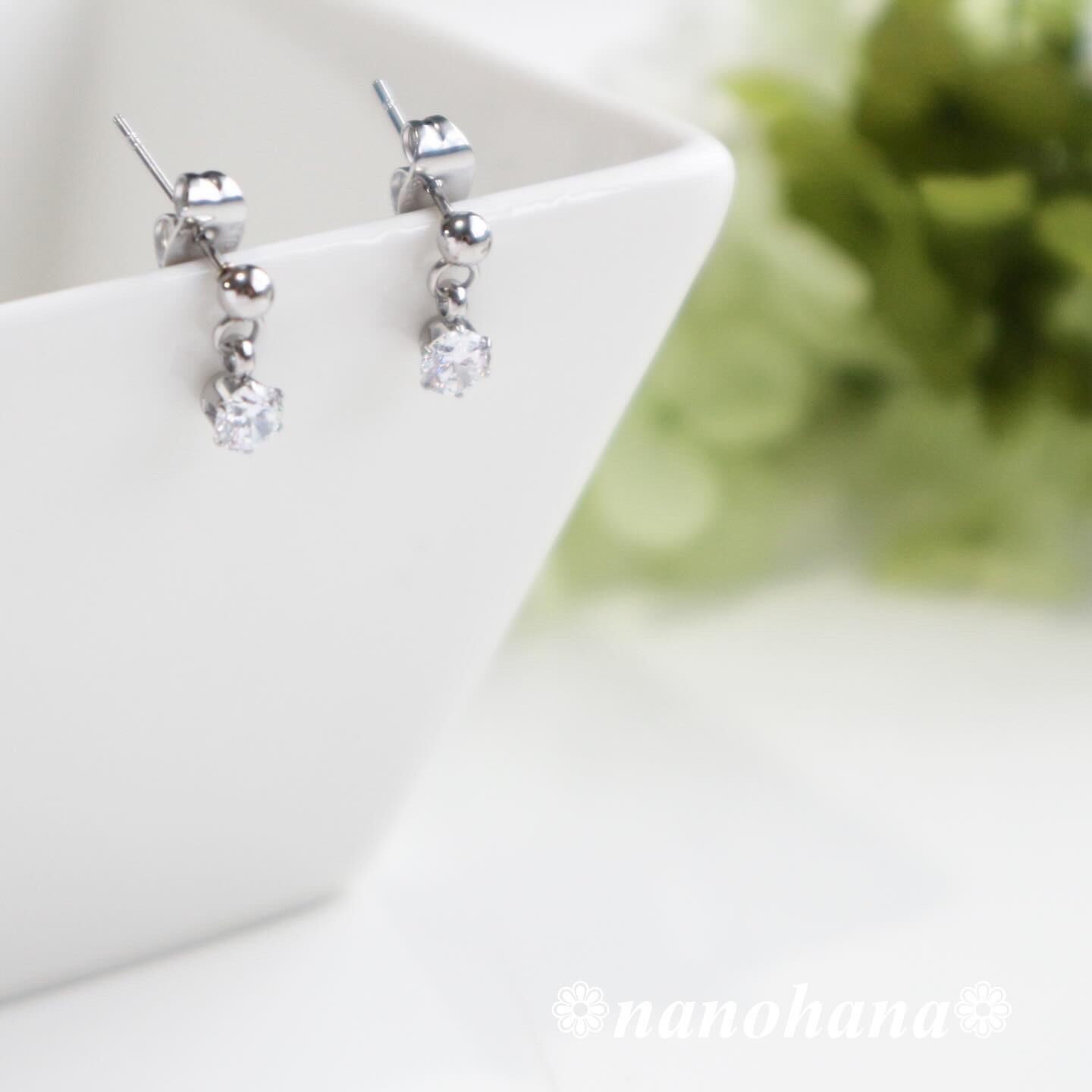 金属アレルギーの方でもお使いいただけるようジルコニア以外の全てのパーツ、金具等サージカルステンレス素材を使ったピアスです。