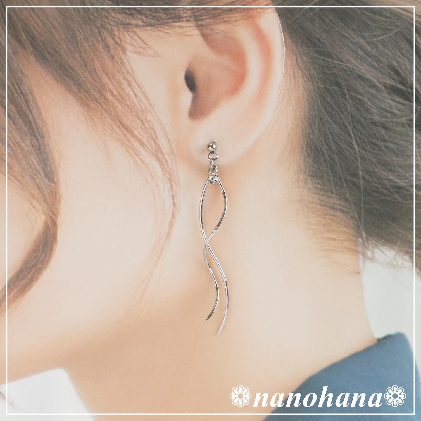 ロジウム素材を使った2種類のツイストパーツをつけた輝きの綺麗なツイストピアスです。