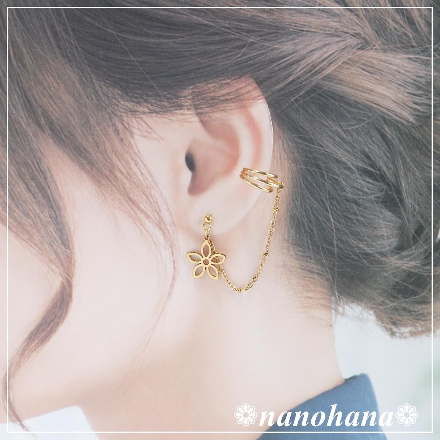 ステンレスフラワーが可愛らしいピアスとイヤーカフです。