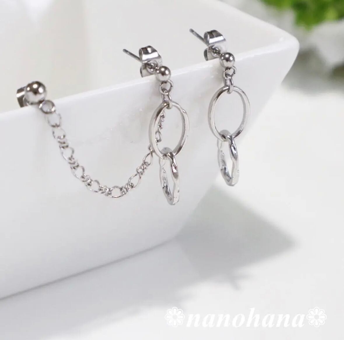 ㅤㅤㅤㅤㅤㅤダブルデザインのオーバルチェーンが個性で目を引く、大人可愛い2連ピアス。シンプルながらも遊び心を感じさせる、おしゃれなデザインです。