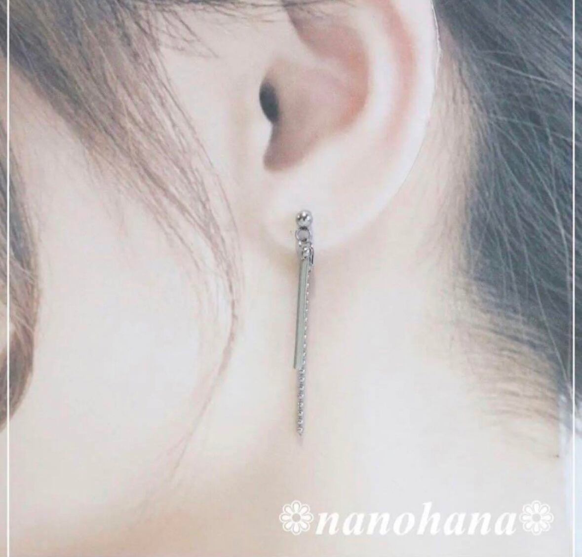 ボールチェーンとスティックがおしゃれなアクセントになり、カジュアルなスタイルからエレガントなスタイルまで様々なコーディネートに対応する大人シンプルピアスです。