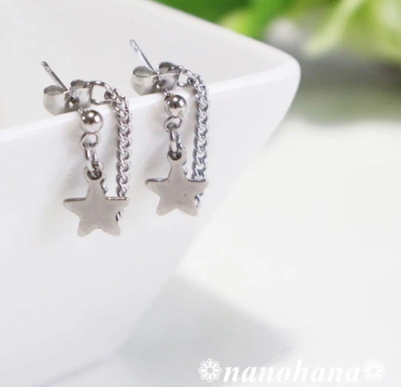 《 シルバーSTARピアス・バックチェーン》482オールサージカルステンレス
