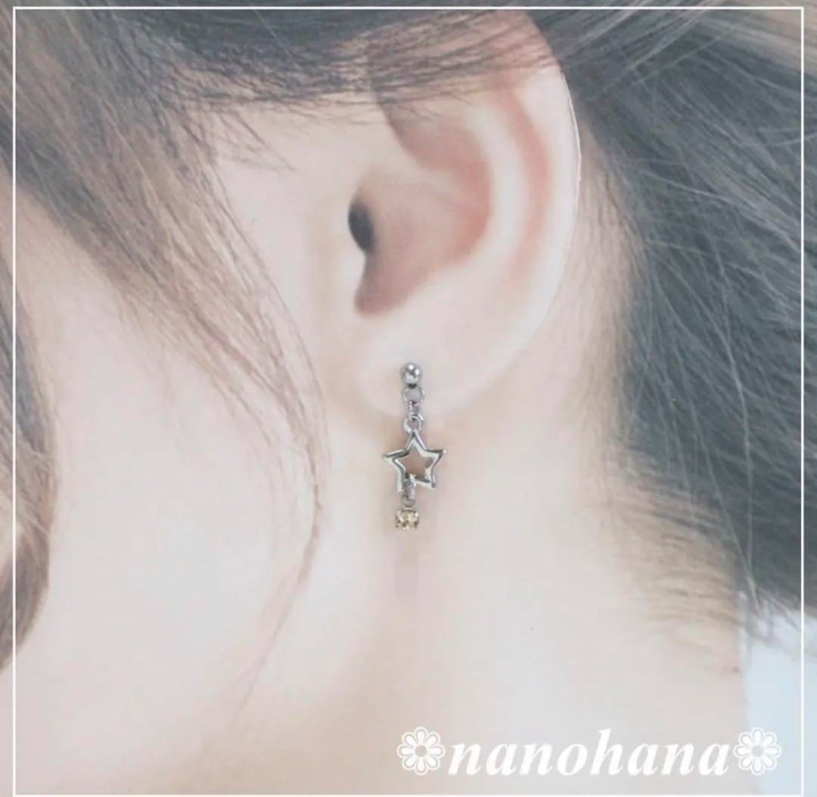 輝きの綺麗な本ロジウムを使った星パーツがとても綺麗なシンプルピアスです