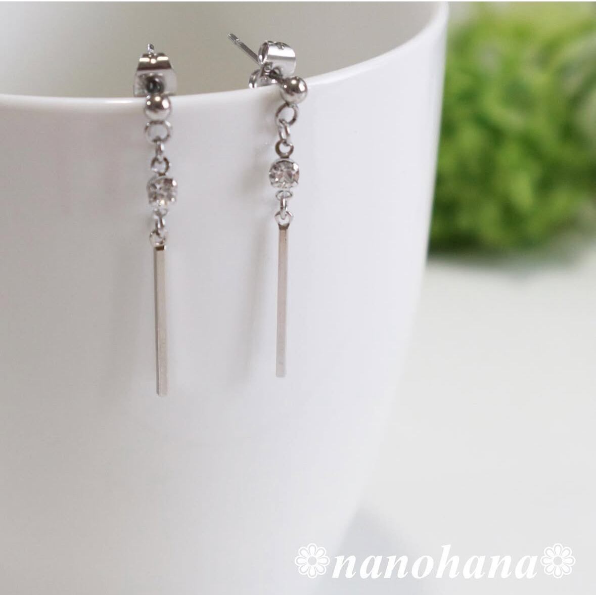 《 ラインストーン付スティックピアス・シルバー 》019(サージカルステンレス)