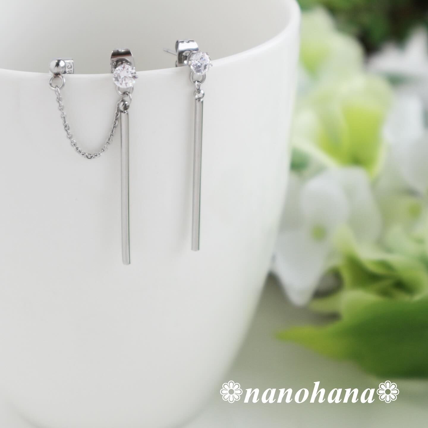《 ジルコニアスティック2連ピアス・シルバー》324オールサージカルステンレス
