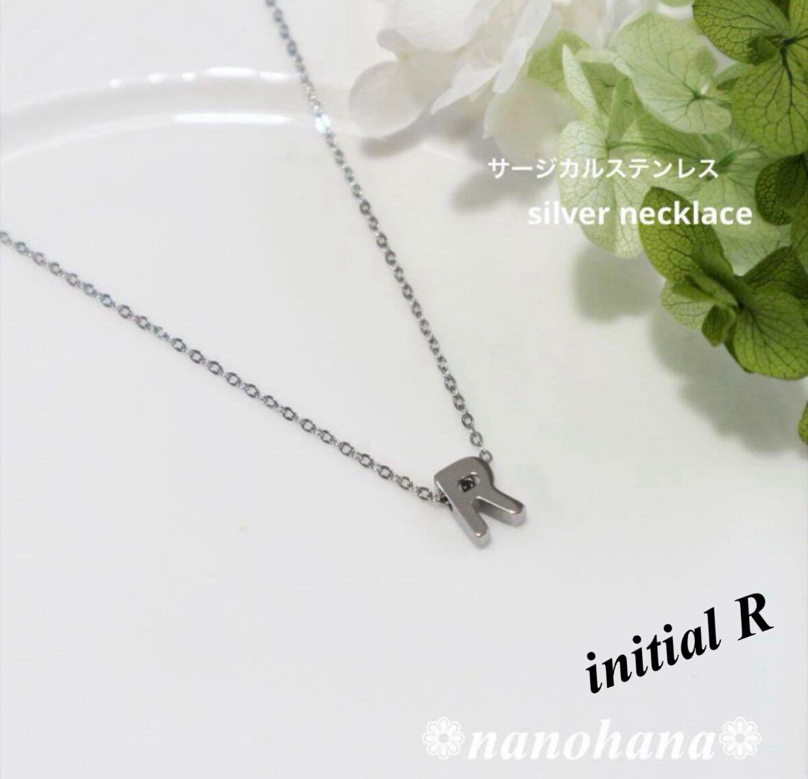 《Rシンプルイニシャルネックレス・シルバー》748 オールサージカルステンレス