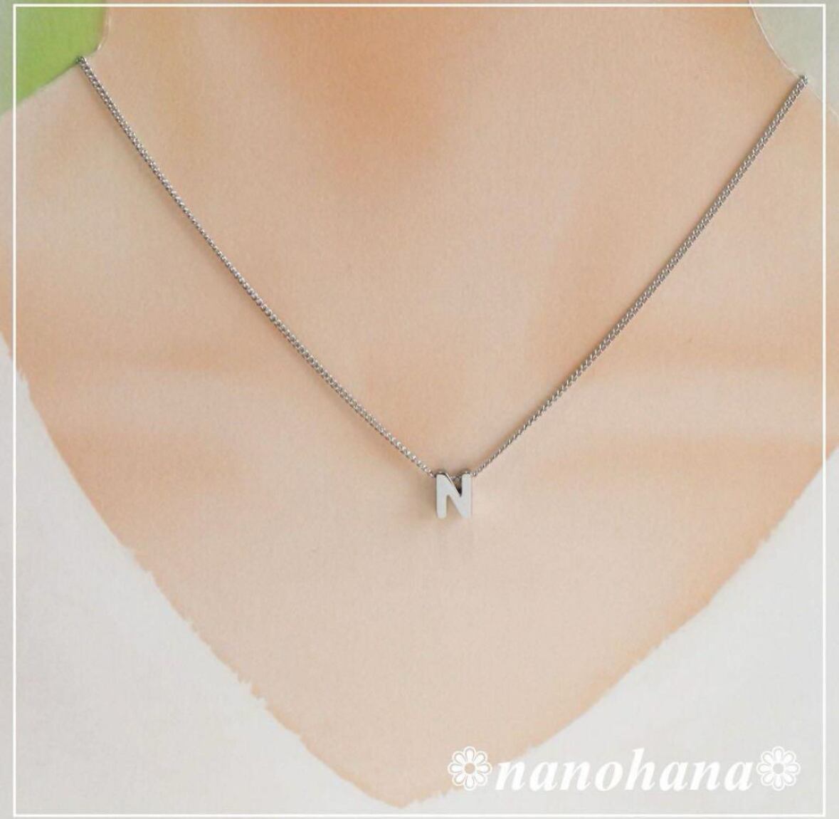 《Nシンプルイニシャルネックレス・シルバー》744 オールサージカルステンレス
