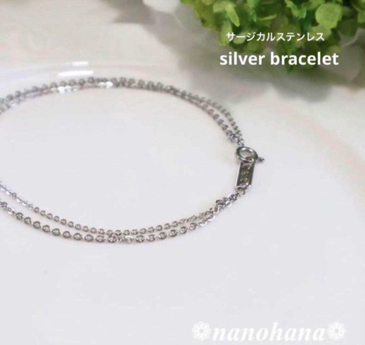 オールサージカルステンレス素材を使用したオシャレなブレスレットです。シンプルでありながらもスタイリッシュなデザインで、どんなコーディネートにも合わせやすく、ダブルチェーンがアクセントになり、手元を華やかに演出してくれます。 2連のチェーンが輝くとても綺麗なシンプルブレスレットです✴︎