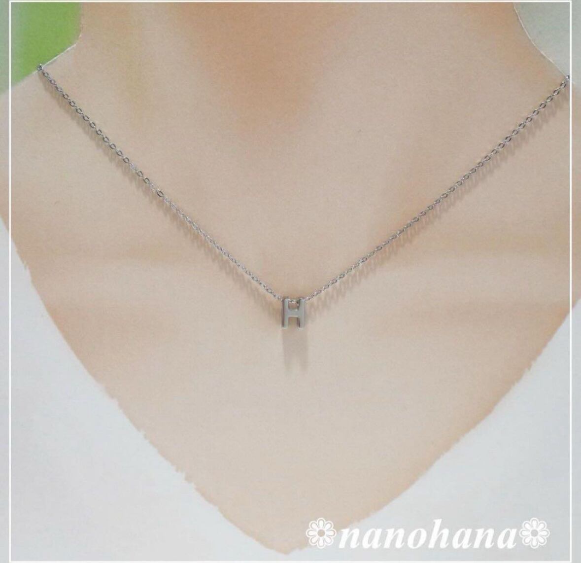 《Hシンプルイニシャルネックレス・シルバー》738オールサージカルステンレス