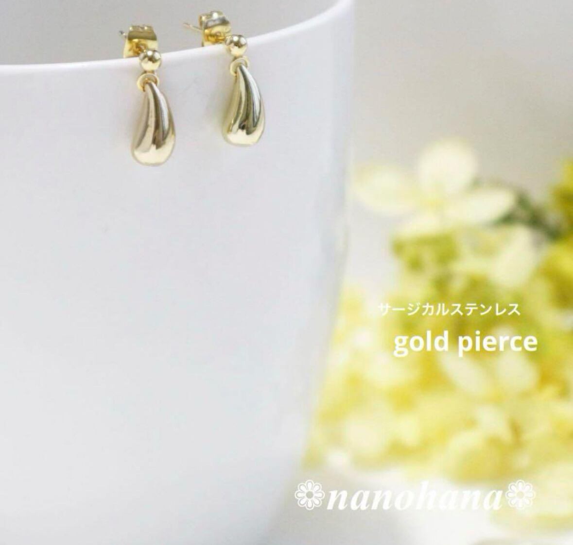 ゴールドカラーのアクセサリーパーツは金属アレルギーが一番起こりやすいと言われるニッケルを除いたメッキ処理をされたパーツです。