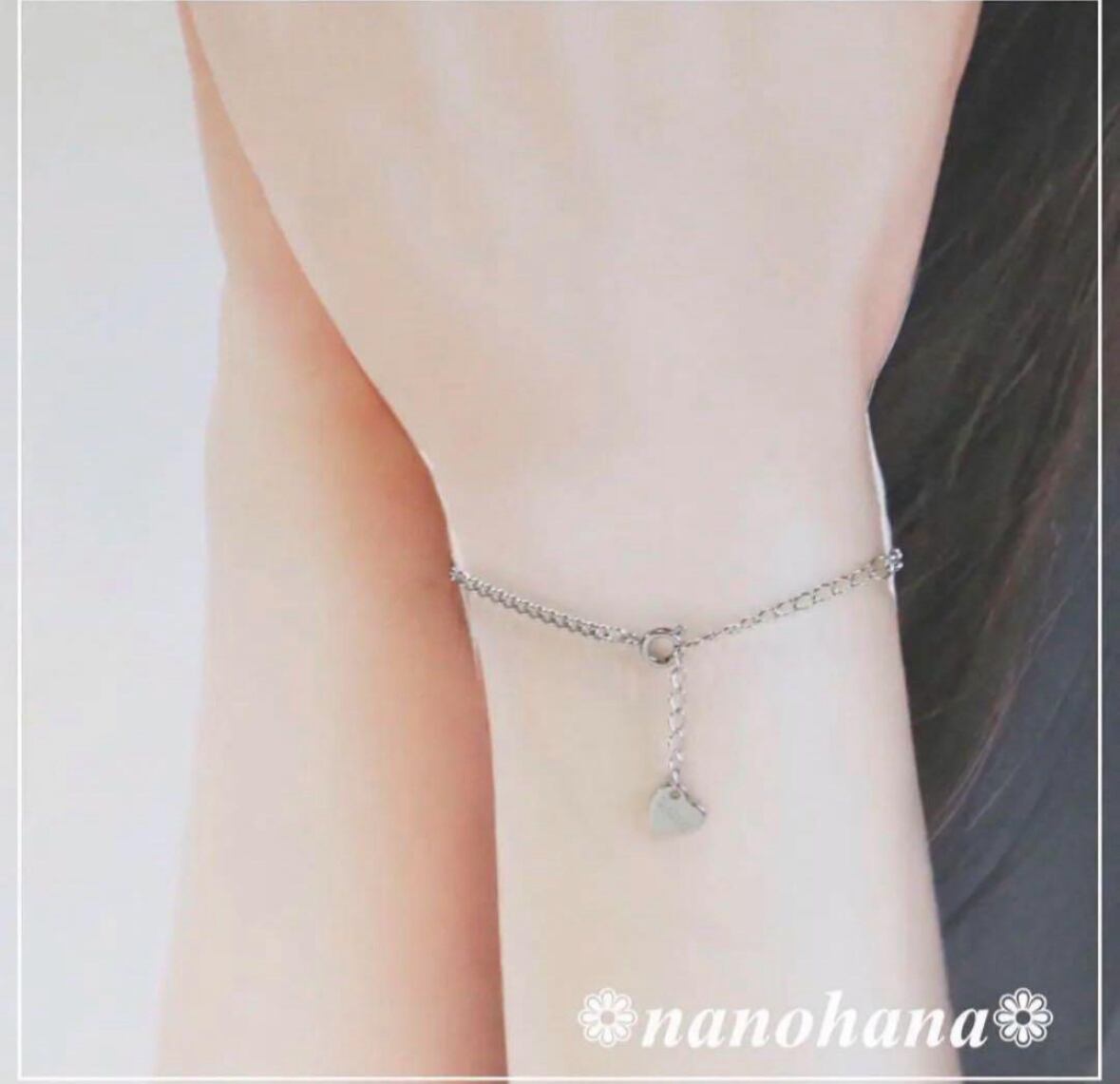 サージカルステンレス素材を使用した上品なデザインが魅力です。シンプルながらもハートモチーフがアクセントになっており、どんなコーディネートにも合わせやすいブレスレットです。