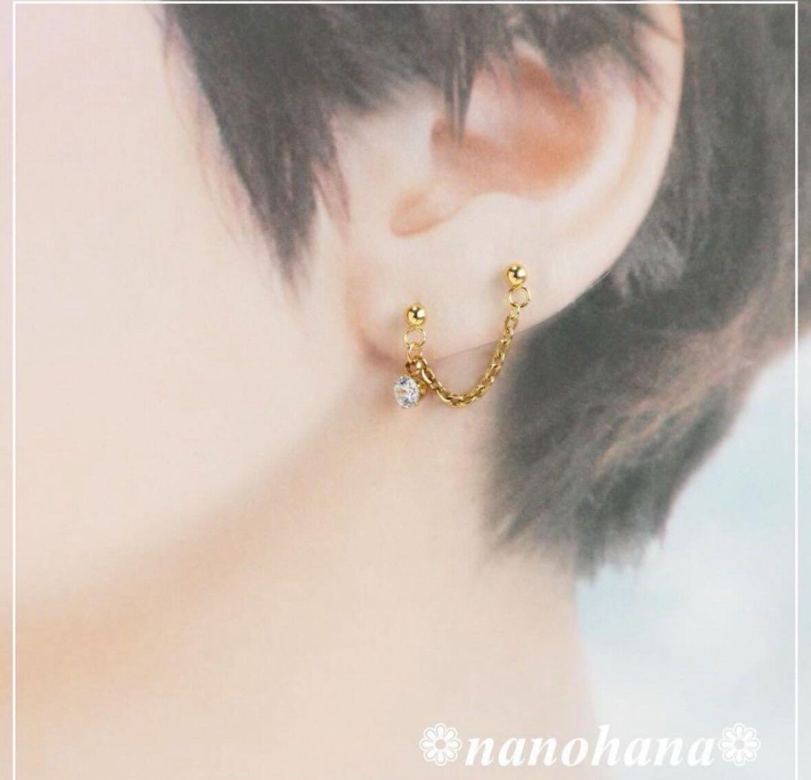 片耳に2つ開けている方専用のピアスです。片耳は1つ。反対の耳2連ピアスをつけていただける非対称のピアスになります(^^)