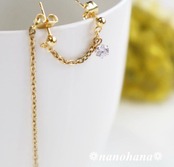 《ジルコニアシンプル2連ピアス・バックチェーンゴールド》313片耳用オールサージカルステンレス