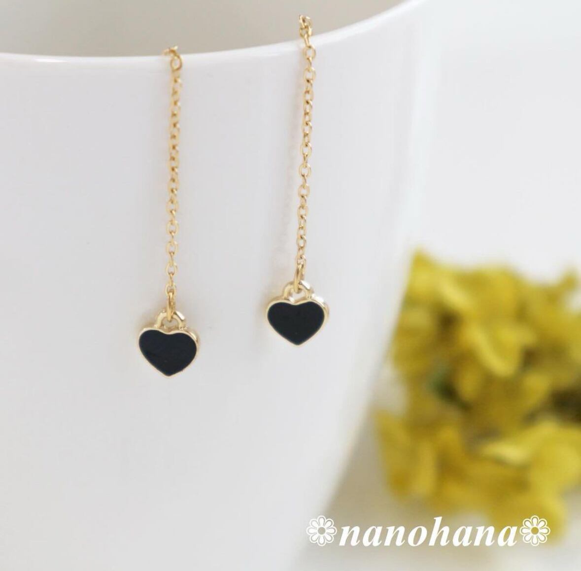 ミニハート付アメリカンピアス・ブラックゴールドは、大人可愛いアイテムとしておすすめです。シンプルでありながらも存在感のあるデザインは、どんなコーディネートにも合わせやすく、耳元に小さなハートが揺れるたびに、心も軽やかになるような気持ちにさせてくれるアクセサリーです。