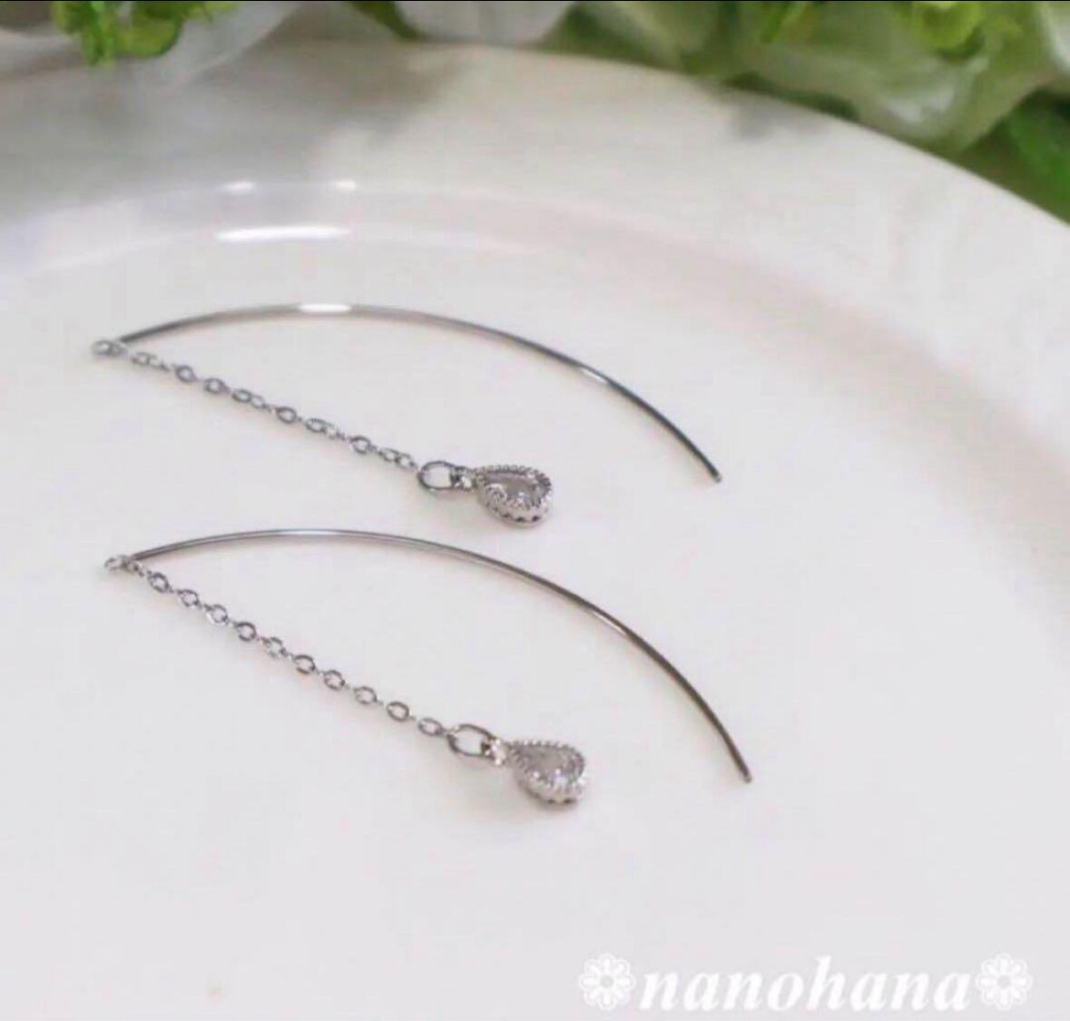 金属アレルギーの方でもお使いいただけるようサージカルステンレス素材のアメリカンピアスを使ったピアスです。