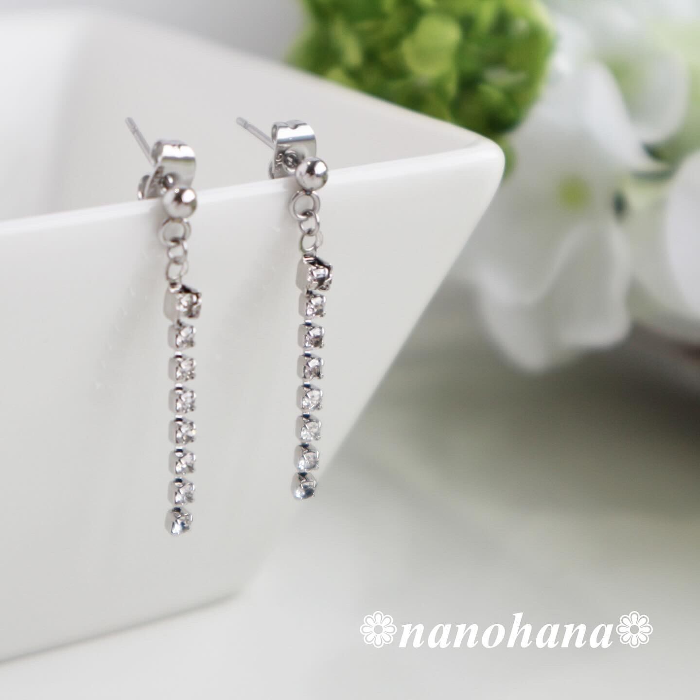 《 ラインストーンチェーン付ミニシンプルピアス・シルバー》009サージカルステンレス