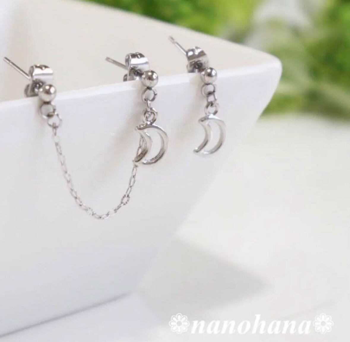 《ミニクレセントムーン2連ピアス・シルバー 》408サージカルステンレス