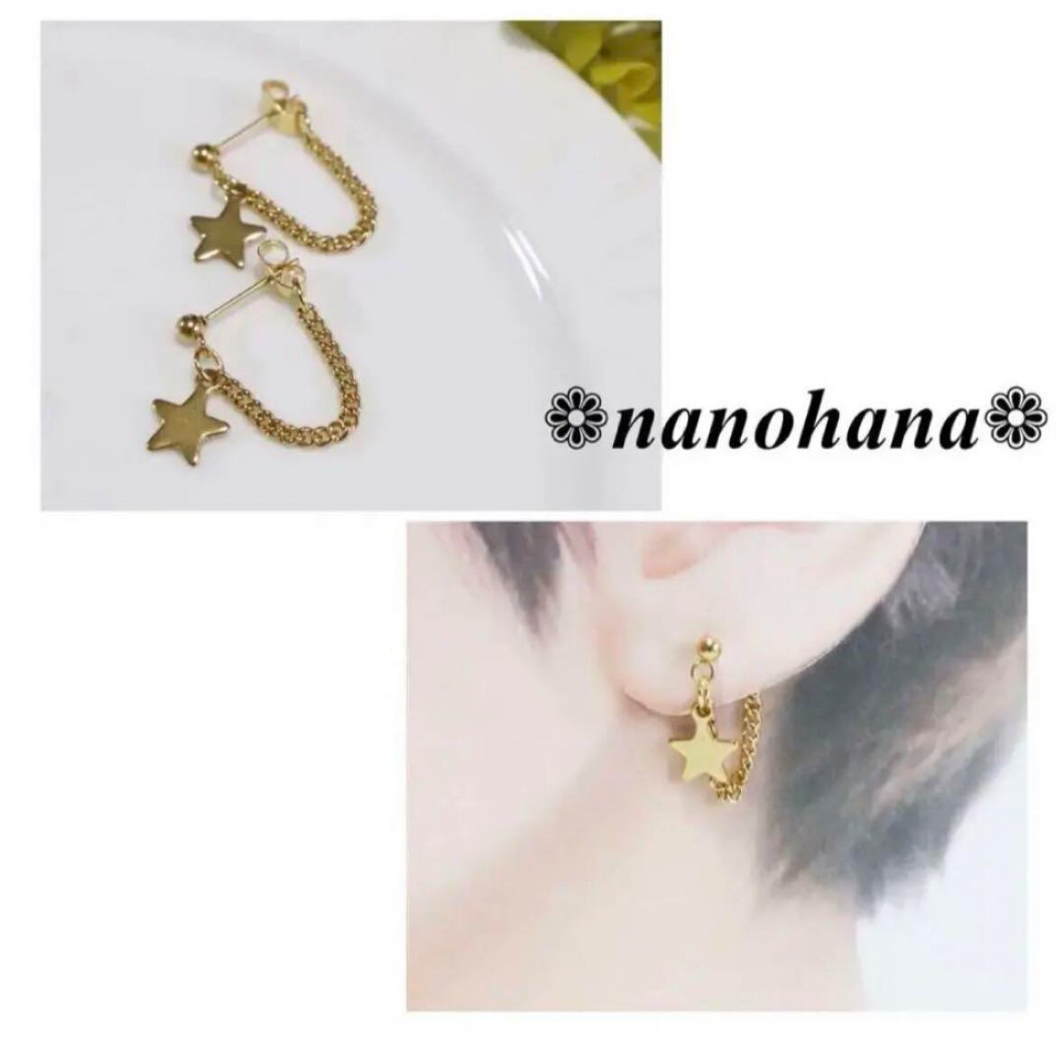 《 ゴールドSTARピアス・バックチェーン》482オールサージカルステンレス