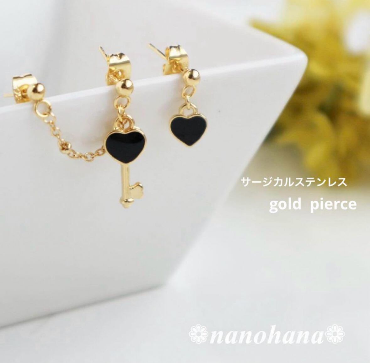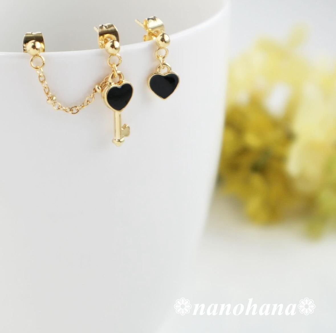 《BLACK LOVE Key2連ピアス・ゴールド》135サージカルステンレス