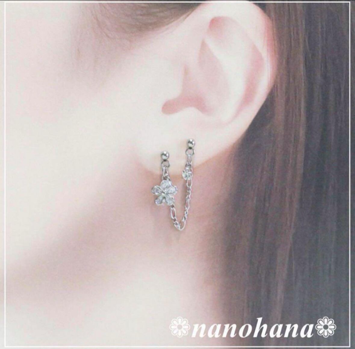 片耳に2つ開けている方専用のピアスです。片耳は1つ。反対の耳2連ピアスをつけていただける非対称のピアスになります(^^)