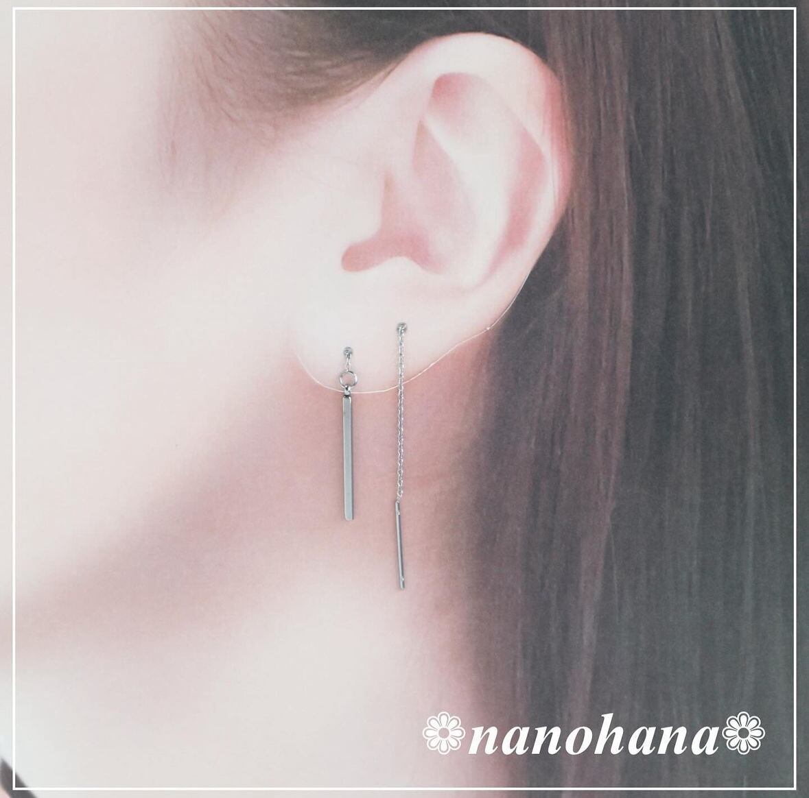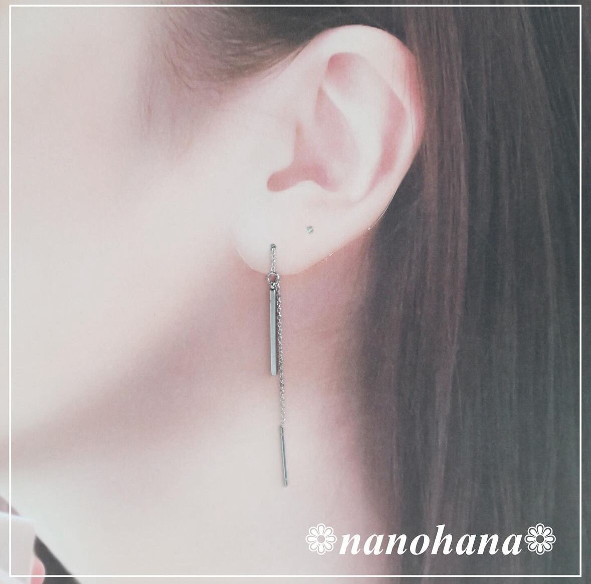 ✽サージカルステンレスアメリカンピアス使用(全長約68mm、チェーン部分約50mm、ポスト約15mm 線径0.7mm)