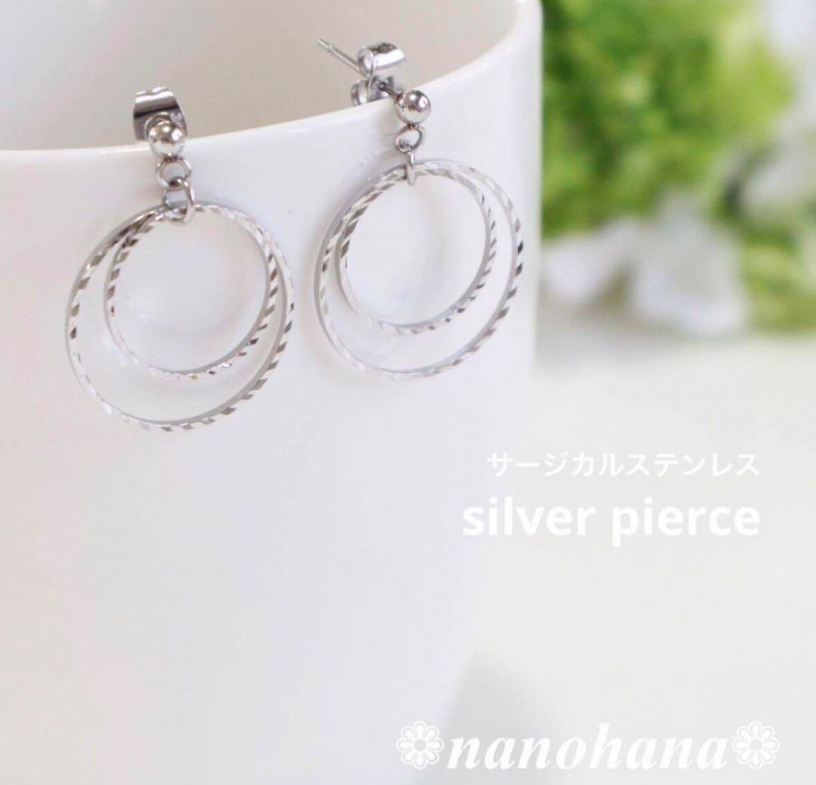 《 ダブルデザインリングピアス・シルバー 》063サージカルステンレス