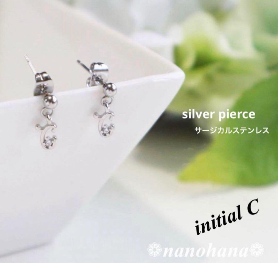 《ジルコニア付Cイニシャルミニピアス・シルバー》118サージカルステンレス