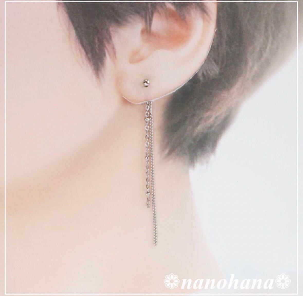 キャッチにチェーンを付けています。どんなコーディネートにも合わせやすいアクセサリーです。お持ちのピアスに合わせて、❁nanohana❁ pierceに合わせてお使いいただけます。