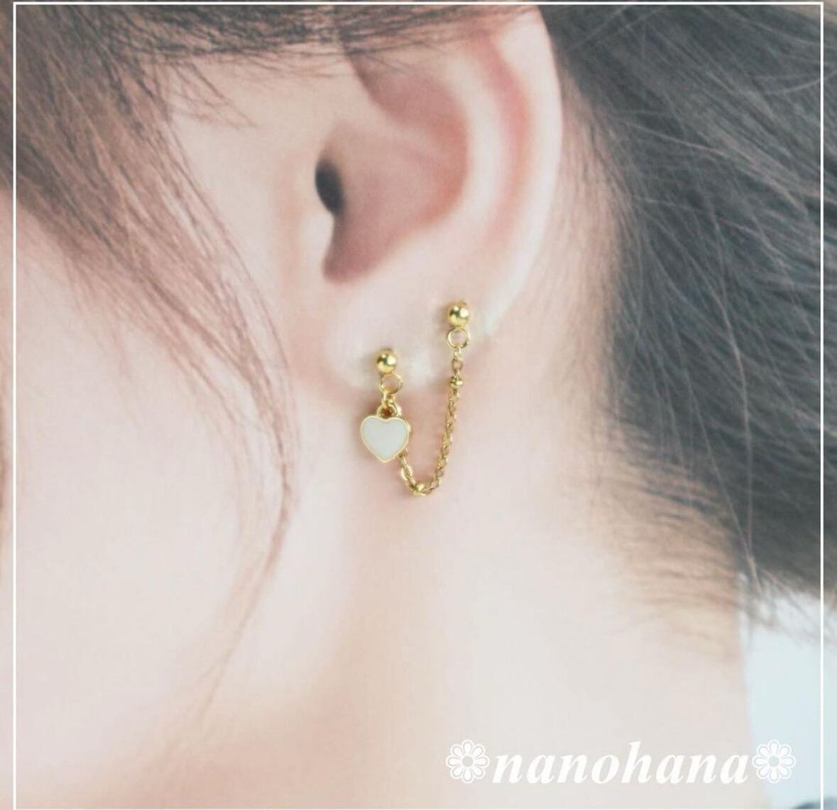 《ホワイトミニHeart2連ピアス・ゴールド》132N サージカルステンレス