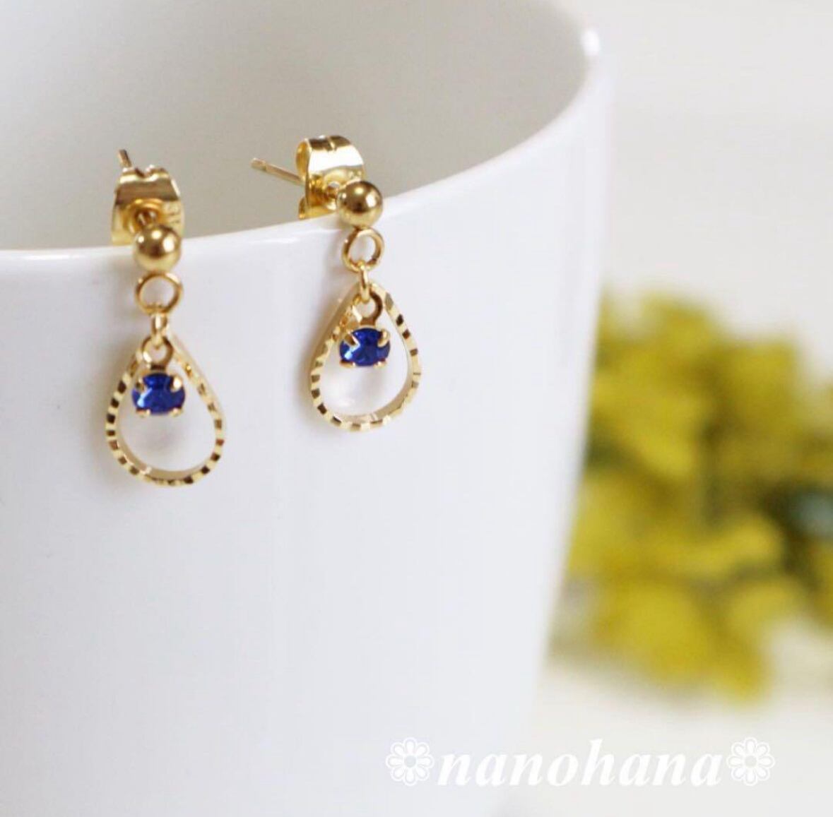 シンプルながらも小さな雫パーツにストーンが輝くとても可愛いピアスです。