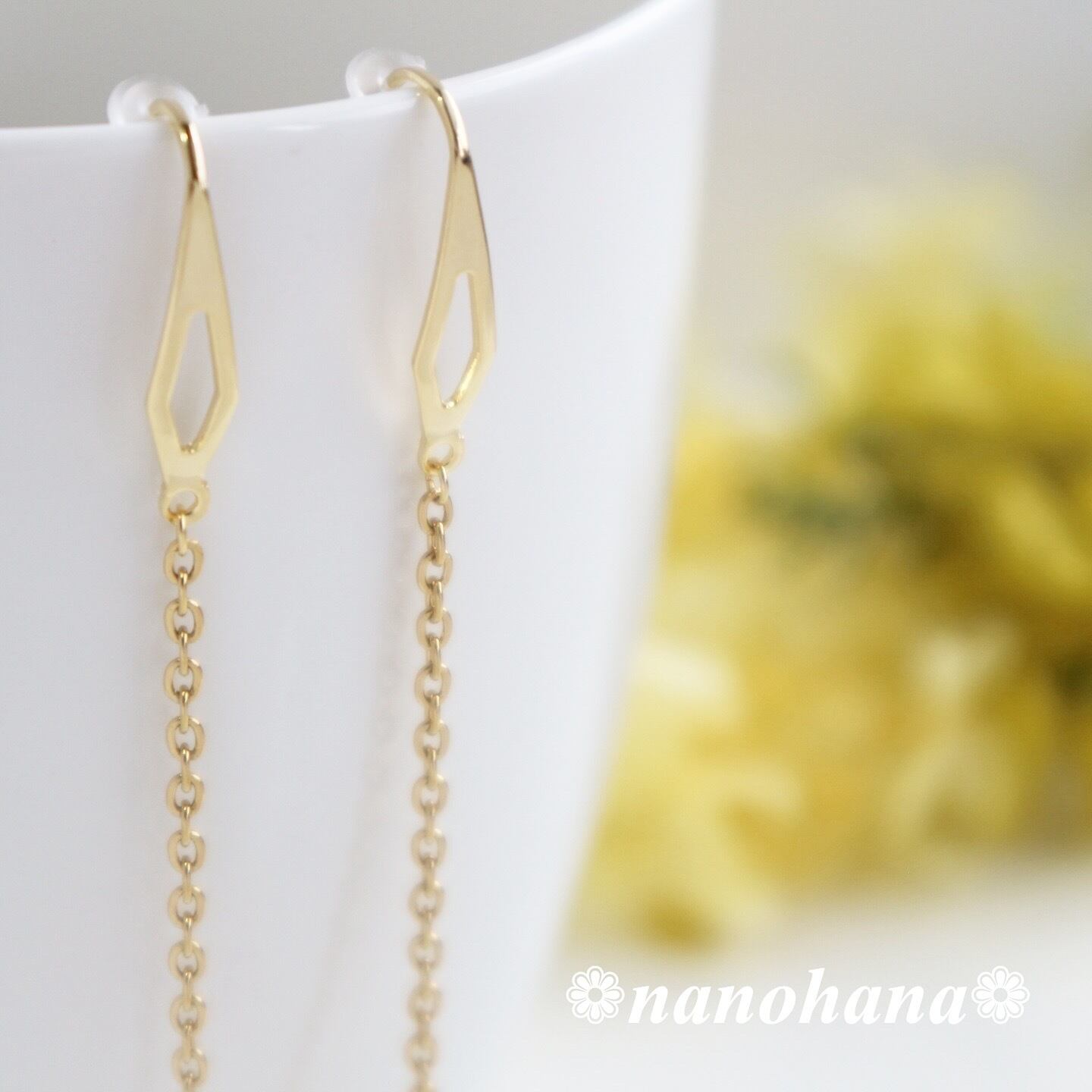 《 チェーン付デザインフックピアス・ゴールド》589 オールサージカルステンレス