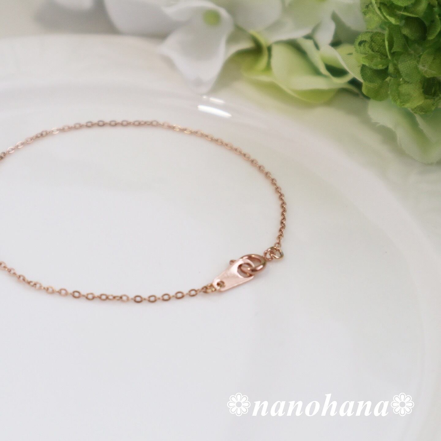 シンプルなデザインながら太陽の光に反射するピンクゴールドがキラリと輝き、手元を華やかに演出してくれるシンプルなアクセサリーです。